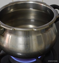 - Cover the pressure cooker and cook it till you get one whistle in low flame. After a whistle,simmer more and keep for another 5 minutes.